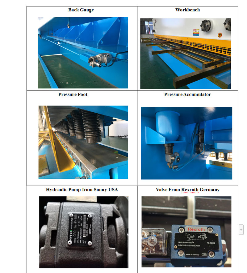 4. Pokretna orbita greda oštrice naginje prema naprijed prema potpornoj površini donje oštrice, tako da možete dobiti finu površinu smicanja. Vijci za dizanje na gornjoj oštrici omogućuju fino podešavanje kako bi se smanjila "krpa" ili "ugriz" na odrezanom rubu materijala. Prihvatni sklop koristi leptir opruge. Na uređaju za držanje ploče za držanje nalazi se protuklizni blok pete. Pritisak je veći, ali ne oštećuje površinu lima.